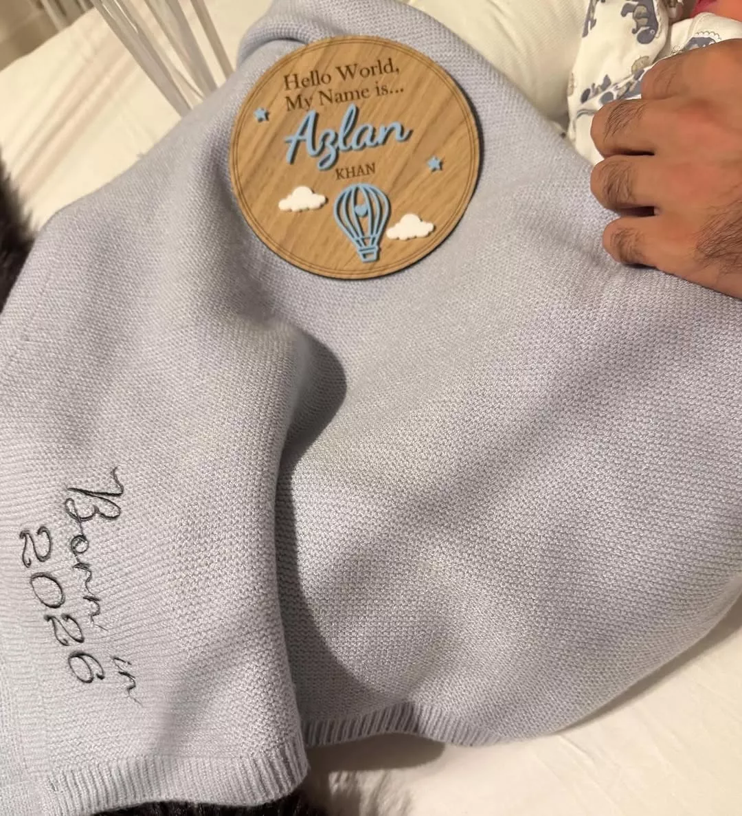 Rashid Khan has officially become a father to a baby boy. On April 14, 2026, he and his wife welcomed their “little prince,” whom they named Azlan Khan. Rashid shared the news with fans on Instagram, expressing deep gratitude and happiness. He thanked God and sought blessings for the newborn from his well-wishers. He introduced the little munchkin to the world by sharing a small piece of grey cloth that included a circular wooden brooch-like structure. The structure included the text, “Hello World My Name is…Azlan Khan” and included cute little symbols of clouds and a hot air balloon.